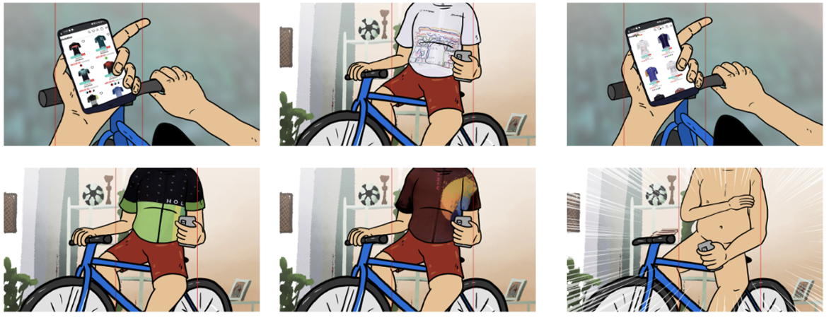 Ve všech fázích jsme koncepci videí stavěli efektu zvaném “Clothing Transitions”, které zřejmě znáte jako trendy Reels videa na Instagramu. Tento efekt, kdy se uživatelům jakoby kouzlem změní oblečení jsme využili u prvního videa na demonstraci jízdy v běžném oblečení a změnu za oblečení Holokolo, ve kterém bude zákazník vypadat i cítit se lépe. V druhém videu jsme využili tento efekt k představení dresů včetně cen. A ve třetí fázi jsme do videa i díky odvaze a smyslu pro humor klienta přidali scénu, kdy našemu hrdinovi ve videu dres zmizí, protože si vybíral tak dlouho, až se kolekce vyprodala.